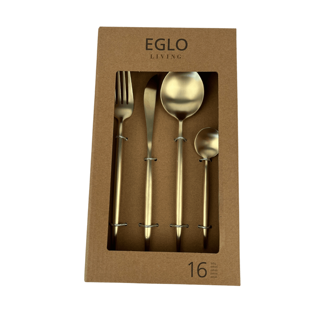 ✔ 16-delig voor 4 personen ✔ Mat champagnegoud finish ✔ Roestvrij staal ✔ Vaatwasserbestendig