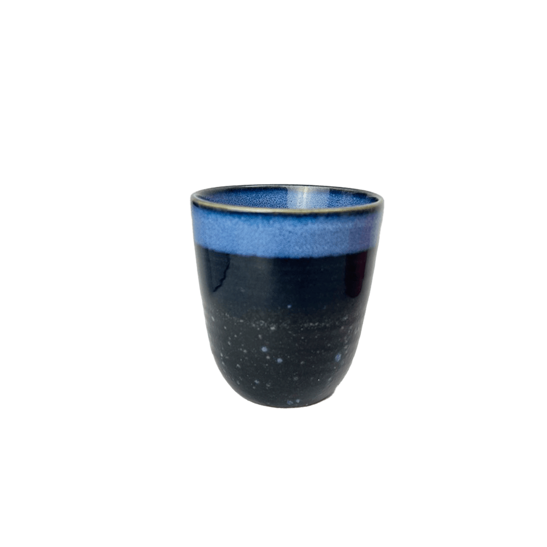 Dit kleine espressokopje ligt lekker in de hand en voegt karakter toe aan jouw koffiemoment. Zwart en blauwe kleur, licht gespikkeld en handgemaakt. Combineert mooi met andere mokken of als klein cadeautje voor koffieliefhebbers.