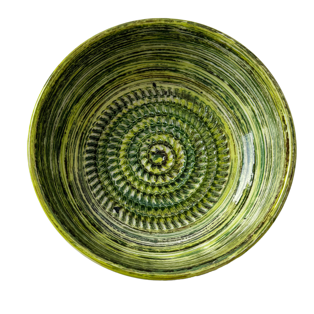 Deze handgemaakte raspkom valt op door het groene gestreepte patroon dat een speelse en levendige uitstraling geeft. De binnenzijde bevat ribbels waarmee je eenvoudig knoflook, gember of citroen kunt raspen – perfect voor dressings, marinades en smaakvolle gerechten.
